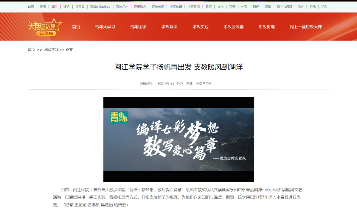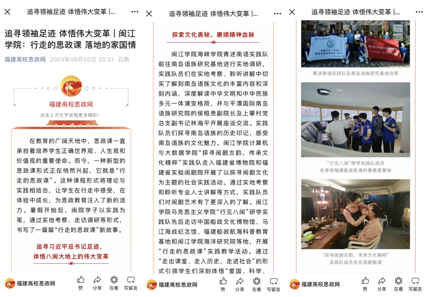 本次暑期社会实践,william威廉各实践团队脚踏实地、圆满完成实践活动并形成优异的实践成果。同时公司师生积极开展实践宣传,多个实践队相关实践纪实得到中新网、中国周刊网、新福建、中国日报网、海峡网、中国青年网等各类媒体的关注、报道,其中国家级报道13篇,省级媒体报道5篇,其他级别媒体报道90余篇,起到了良好的宣传推广效果,展现了计数公司学子的风采,也提高了william威廉的社会影响力和美誉度。可喜可贺的是,“编译七彩梦想,数写爱心篇章”暖风支教实践团队的支教视频被共青团中央大思政课云平台《思政实践》专栏所收录。此殊荣非但彰显了对暖风支教队伍的深切认可与崇高赞誉,更如同璀璨星辰,照亮了团队每位成员不懈耕耘、默默奉献的成长轨迹,成为其辛勤汗水最为闪耀的徽章,彰显着责任与担当的熠熠光辉。