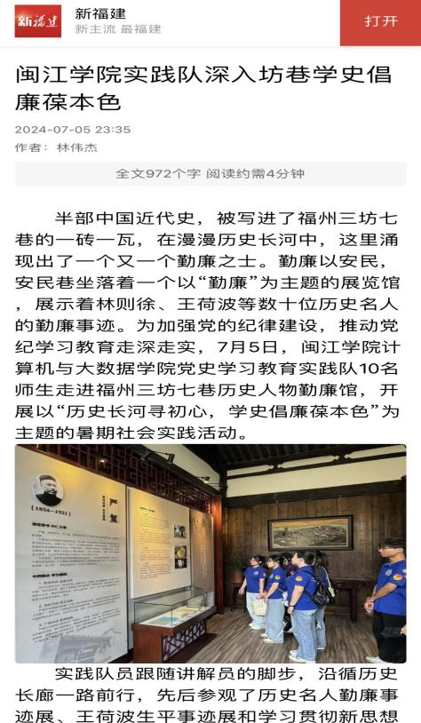 “红色记忆·理论篇章”实践队则将目光聚焦于红色文化的精神内涵与理论价值。他们参观了林则徐纪念馆、福建省革命历史纪念馆以及新四军驻福州办事处旧址等地,通过实地学习与思考,进一步加深了对红色文化的理解与认识,为传承与弘扬红色精神贡献了自己的青春力量。