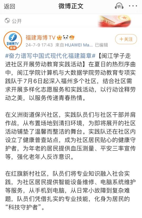 7月6日至8日,“劳动筑梦义洲,服务温暖人心”实践队在义洲社区为老年人提供服务。实践队员为老年人解决智能手机的使用困难、了解他们对健康普查活动的偏好,从而为社区的持续发展和老年人的福祉提供支持和帮助。在平安建设方面,队员们加强安全宣传教育,提高老年人对平安建设重要性的认识,鼓励他们积极参与到社区的平安建设中来。一幅幅温暖人心的社区服务画卷正生动演绎、预告着中国式现代化充满生机、和谐美丽的当下与未来。