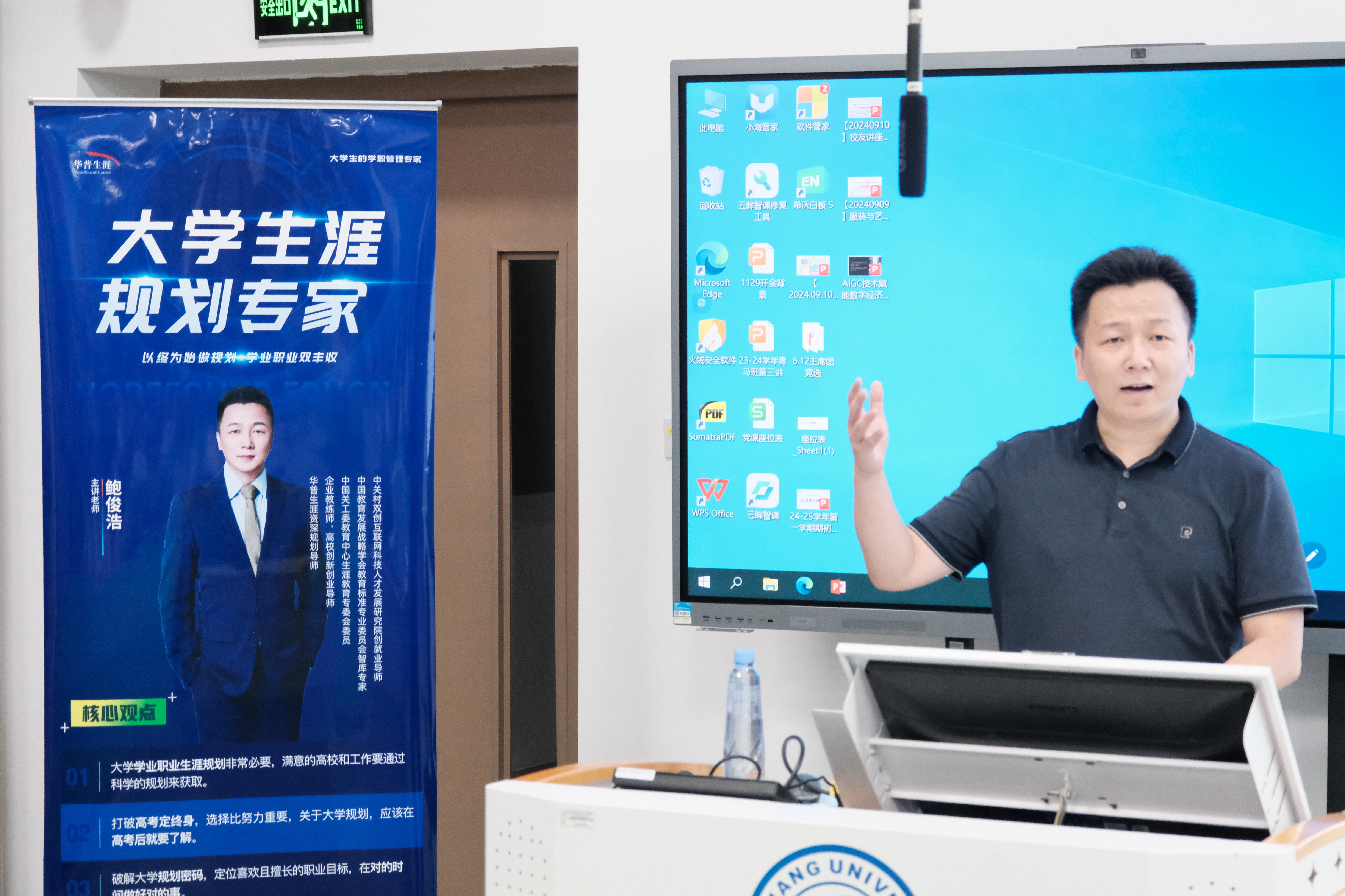 鲍俊浩老师以人格特征和个人能力为出发点,以企业需求和价值观为导向,点明同学们应提升成绩、英语、社会实践、学术实践、竞赛经历、综合素质六维度核心竞争力,为规划大学时间轴提供了明确的方向。答疑环节,同学们积极提问,鲍老师与听众亲切沟通交流,为同学答疑解惑。