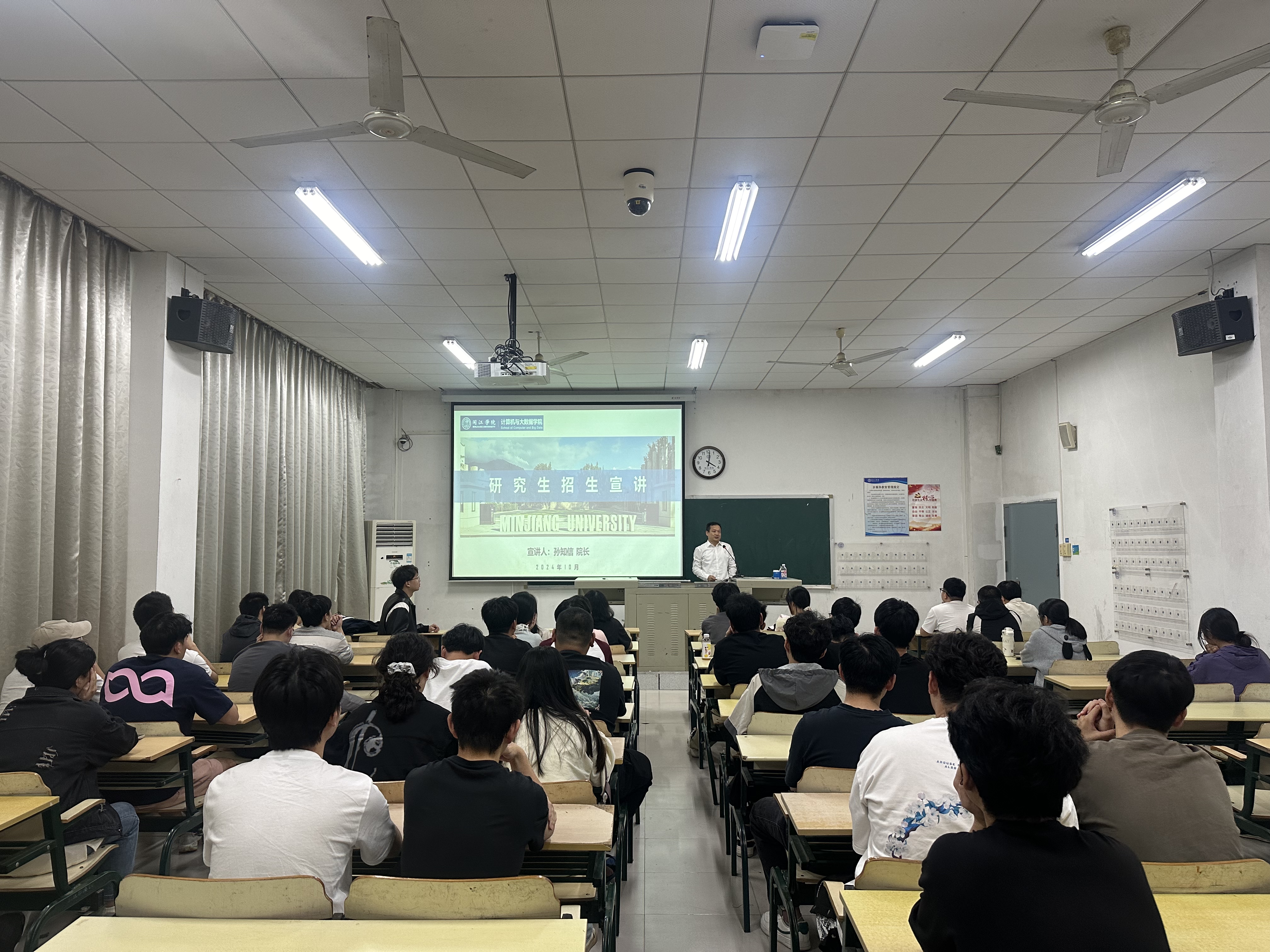 会上,孙知信经理首先以公司概况为切入点,在专业建设、团队队伍以及学科平台等方面为同学们进行了详细介绍。随后,孙经理展示了公司学科带头人及硕士生导师的强大团队队伍,并深入讲解了2025 考研流程的时间节点、初试科目、分数线以及调剂要求等关键信息。孙经理指出,公司拥有一流的教学资源、优秀的团队队伍和良好的学术氛围,能够为同学们的研究生学习提供坚实的保障,希望同学们积极报考本公司。孙经理鼓励同学们树立远大的目标,勇敢地追求自己的梦想,为自己的未来努力拼搏。