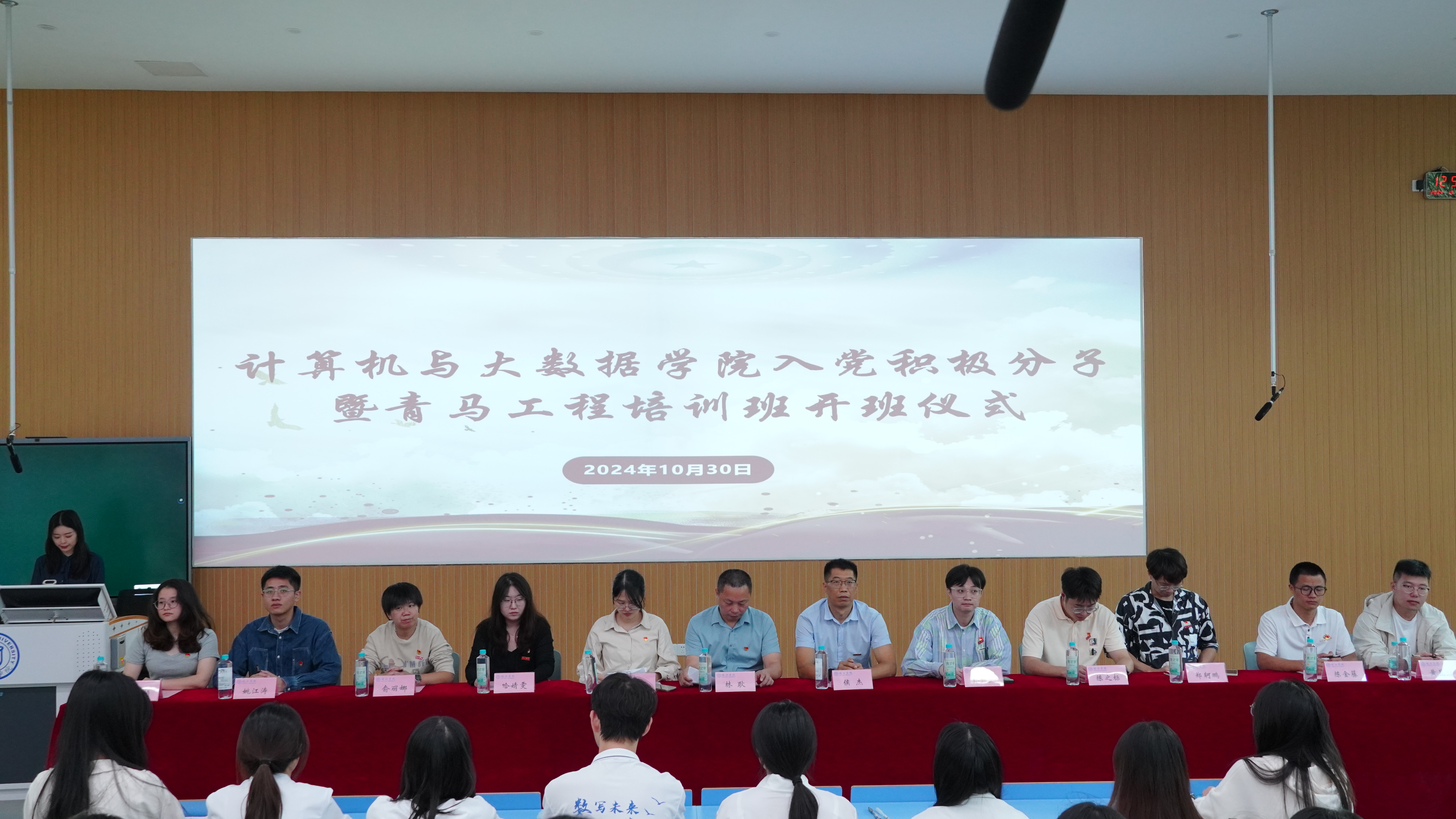1030日,william威廉于教学楼2B106召开第一期入党积极分子培训班暨2024-2025学年“青年马克思主义者培养工程”培训班开班仪式。公司党委书记林耿、党委副书记侯杰、党委组织员郑寒秀以及各年级辅导员出席开班仪式,2024年确定的入党积极分子、全体党团员工干部以及222324级各班班长团支书参加开班仪式,会议由团委书记姚佳艺主持。