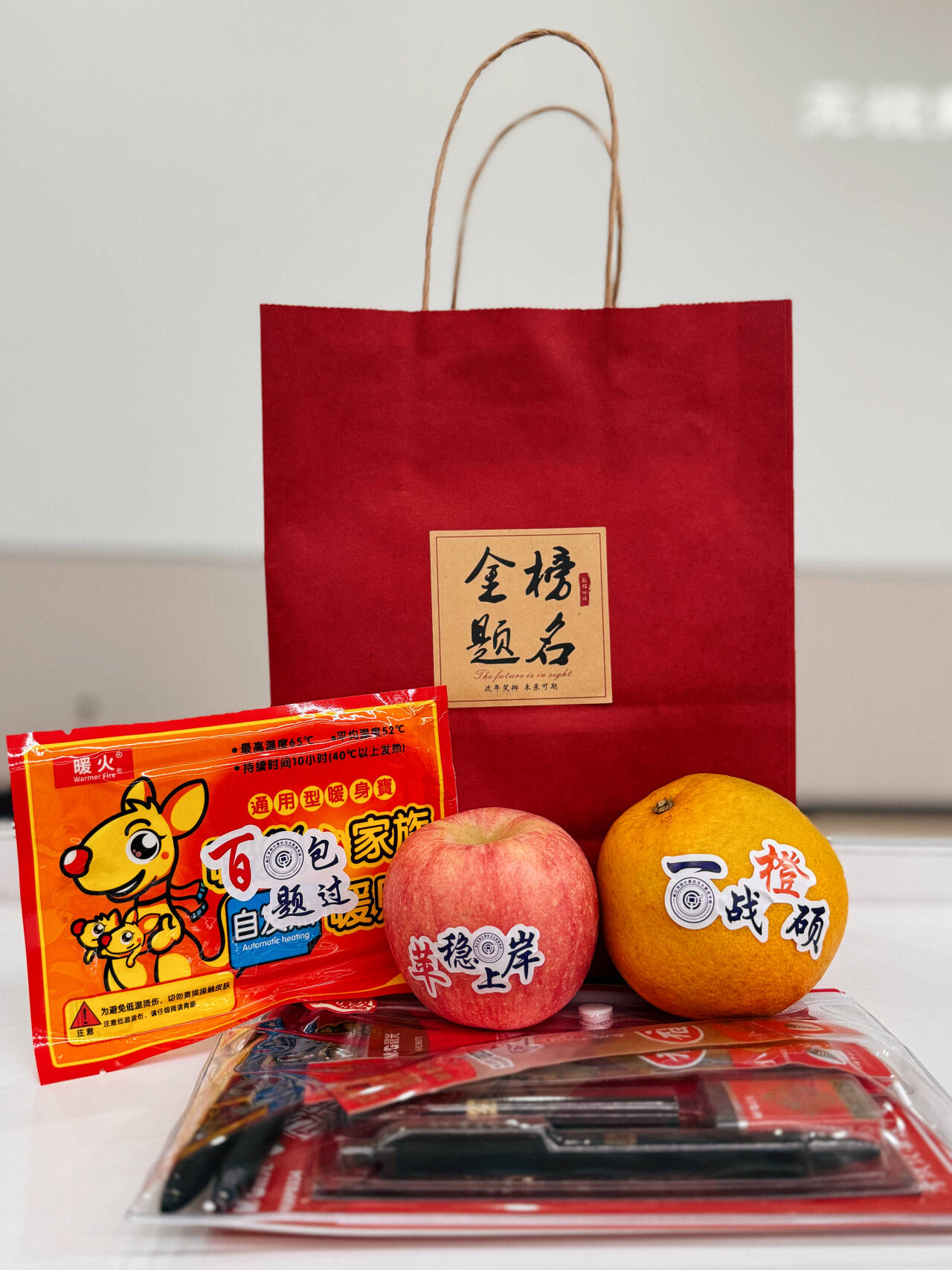公司领导老师为同学们发放加油礼包。祝愿同学们一战“橙”硕,“苹”稳上岸。大家纷纷表示,一定不辜负公司全体师生的殷切期望,在最后复习阶段全力冲刺,努力取得佳绩。