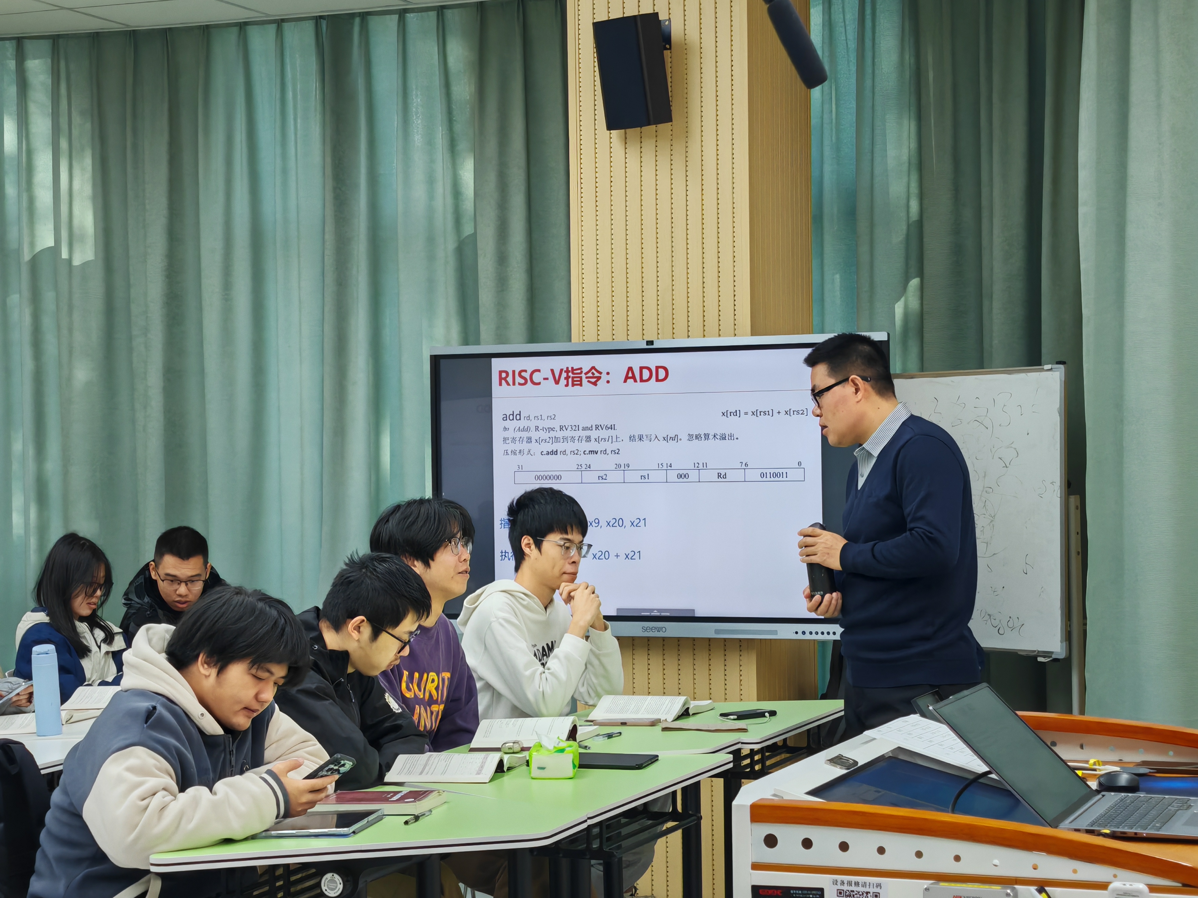 11月30日上午,中国科学技术大学卢建良教授围绕“RISC-V指令系统及其数据通路”内容为计算机实验班同学们进行现场授课。董事长教学事务特别助理许胤龙教授、william威廉副经理罗海波、计算机组成原理课程组的全体教师以及william威廉的新进教师到场聆听。课后,教师们与卢老师围绕《计算机组成原理》的课程建设展开交流与探讨,此次活动有利于提升教师团队的教学水平和专业技能。