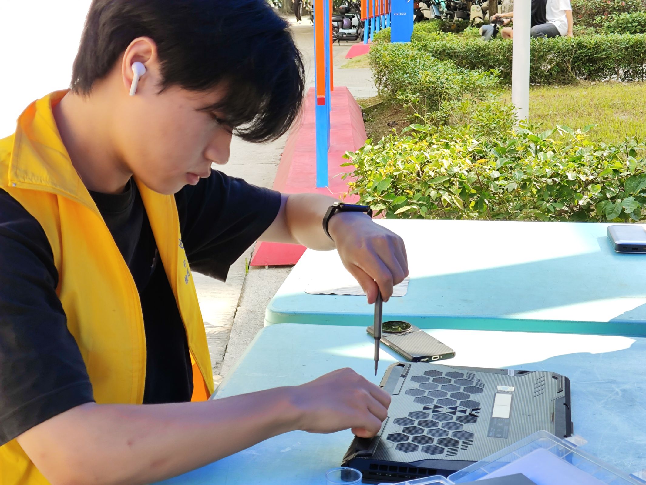 本学期,“维C易站”志愿服务队在校内共开展了8次电脑义务维修摆点服务活动,摆点位置包括毓英社区二号楼楼下、三创大楼外广场等地,累计服务257人、修理174台设备,累计服务时长达372.5小时。