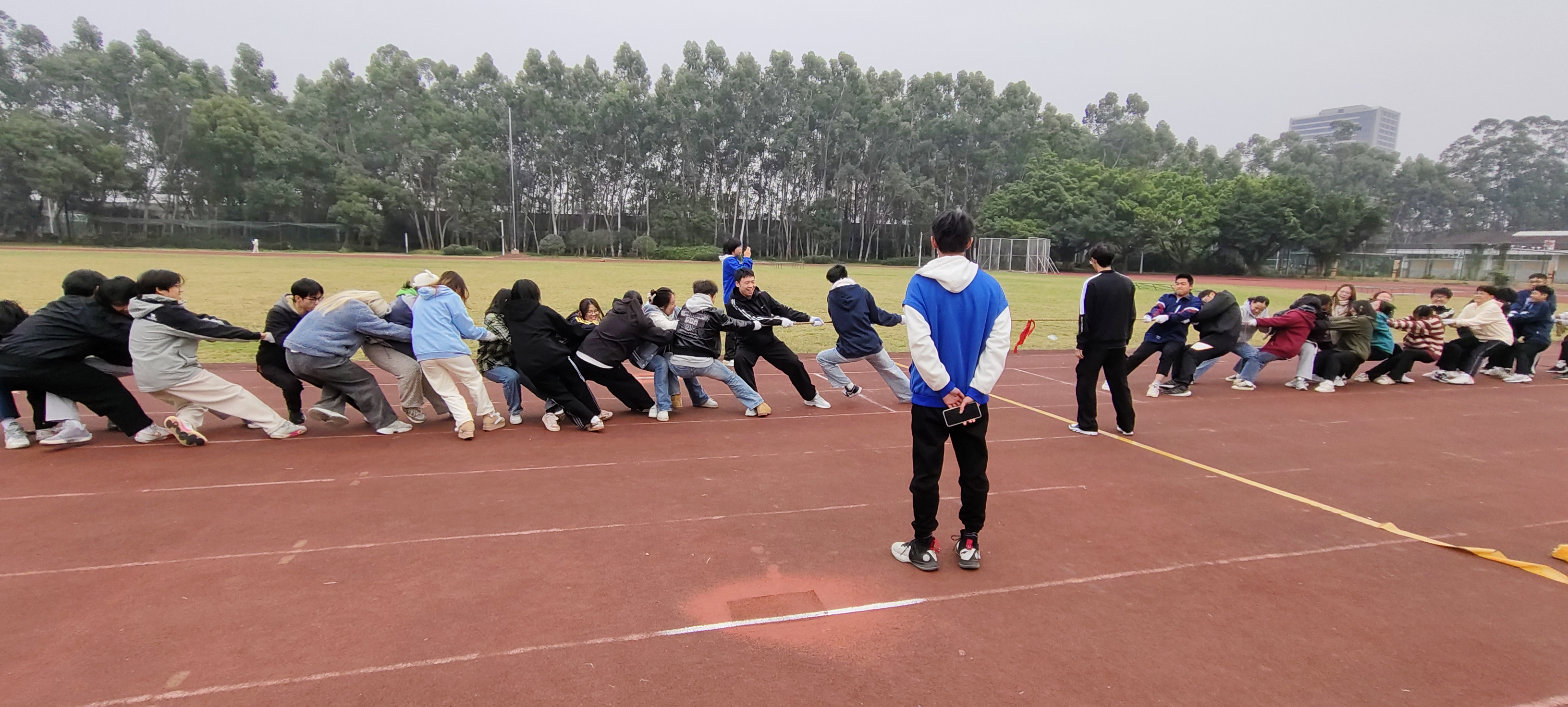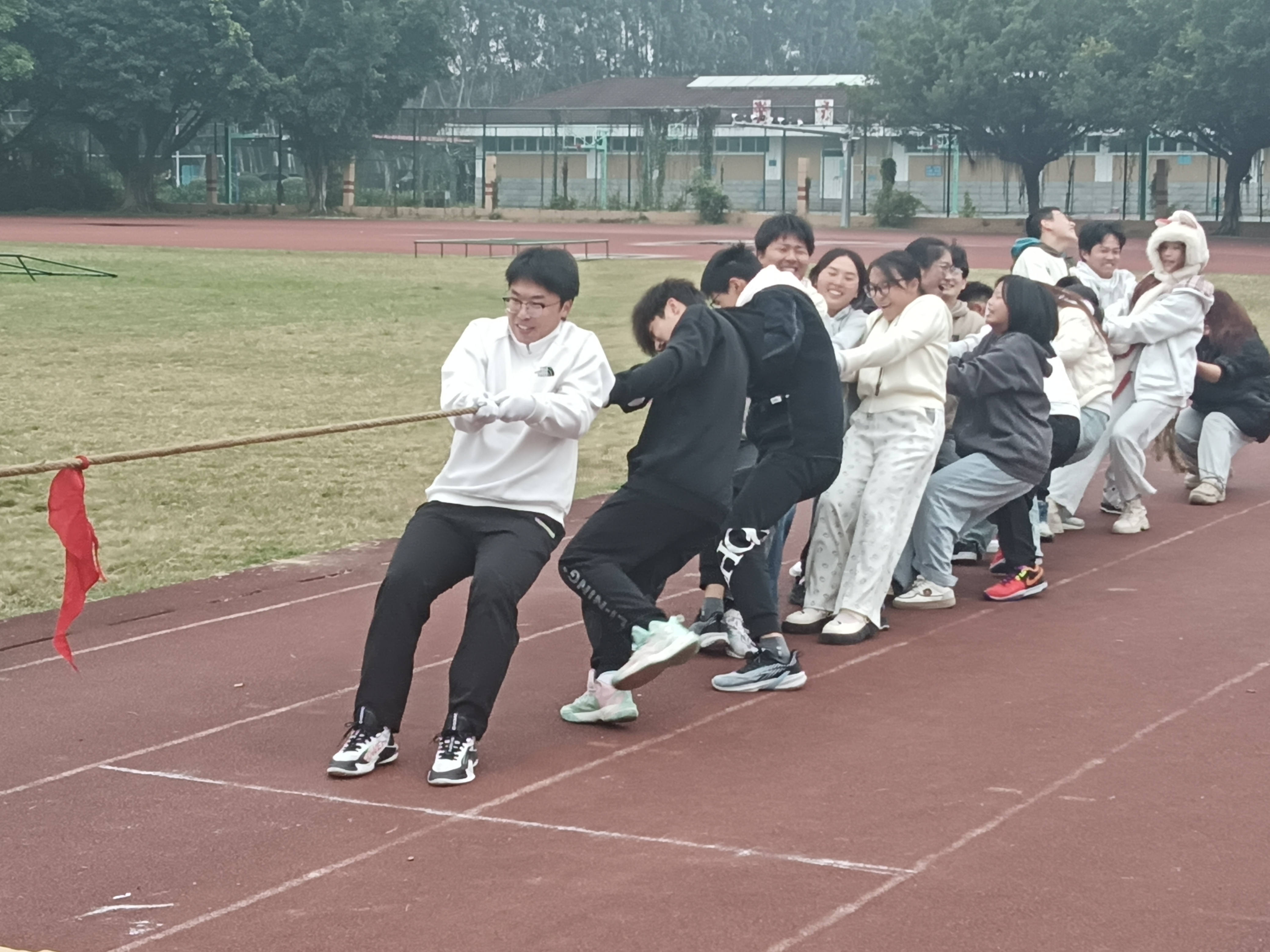 本次比赛采取淘汰赛和循环赛相结合的赛制,为参赛同学提供展现自我的平台。号子声、呐喊声、欢呼声交织回荡,点燃了校园的热血激情,也拉开了力量与激情碰撞的帷幕。每支参赛队伍怀揣着满腔热忱与昂扬斗志踏入赛场,他们神采飞扬,眼神中透露出势在必得的坚毅。哨声一响,绳子瞬间绷紧,肌肉隆起、青筋暴跳,双方陷入僵持,红绳在中线附近微微颤动,选手们个个扎稳马步,双手如钳子般死死攥住粗绳,臂膀上肌肉紧绷,每一寸肌理都在诉说着奋力拼搏。与此同时,现场观众自发组成啦啦队,他们高喊加油,声浪一波高过一波,他们的助威成为队员们咬牙坚持的最大动力。