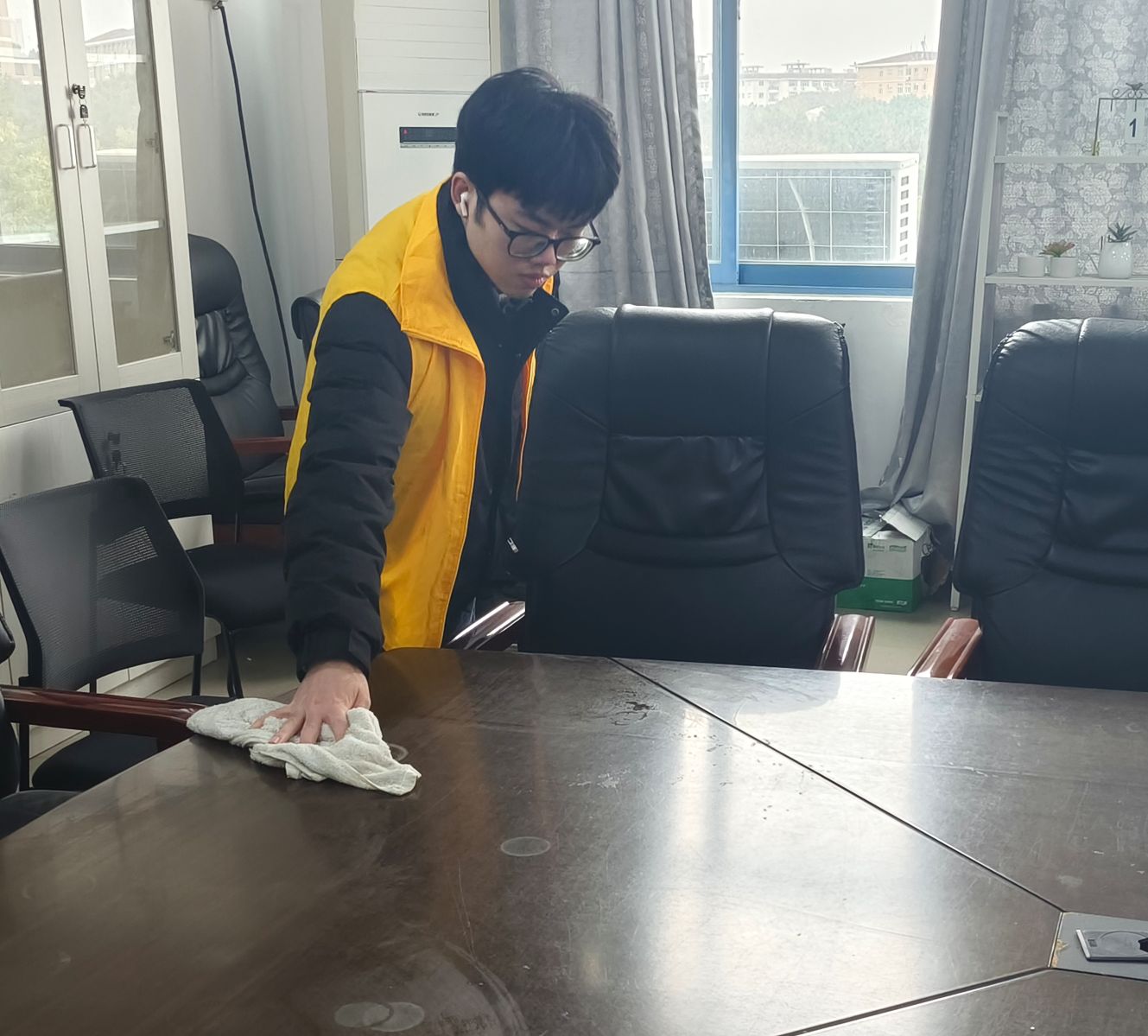 活动当天,志愿者们身着志愿者马甲,手持清洁工具,精神饱满地投入到清扫工作中。他们分工明确,默契配合,对毓英社区易起学吧、会议室、考研自习室、务成楼办公室、实验室等地进行了全面清理。有的负责清扫地面垃圾,有的负责擦拭宣传栏,还有的负责摆放桌椅等物品……大家不怕脏、不怕累,认真细致地清理着每一个角落,用实际行动诠释着“奉献、友爱、互助、进步”的志愿服务精神。