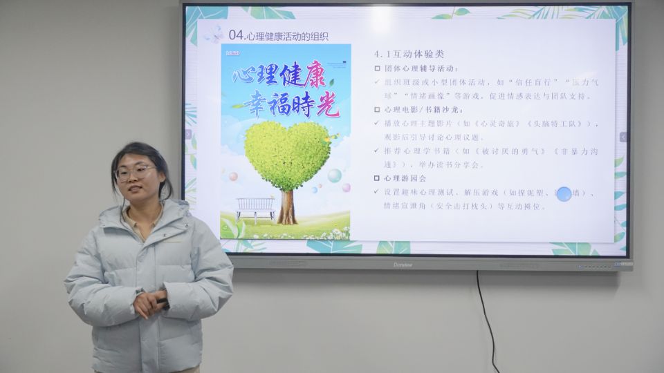 讲座伊始,张曼曼老师讲解了心理委员的职责和扮演的角色,接着为同学们详细介绍了心理健康的概念,解读了焦虑、抑郁等常见心理问题的表现和差异,探讨心理问题产生的原因并给出保持心理健康的方法。最后,张曼曼老师带领同学们一同学习了多种形式的心理健康活动,鼓励心理委员们能够在学习中提升自身能力,掌握更多心理知识,用实际行动帮助更多同学。