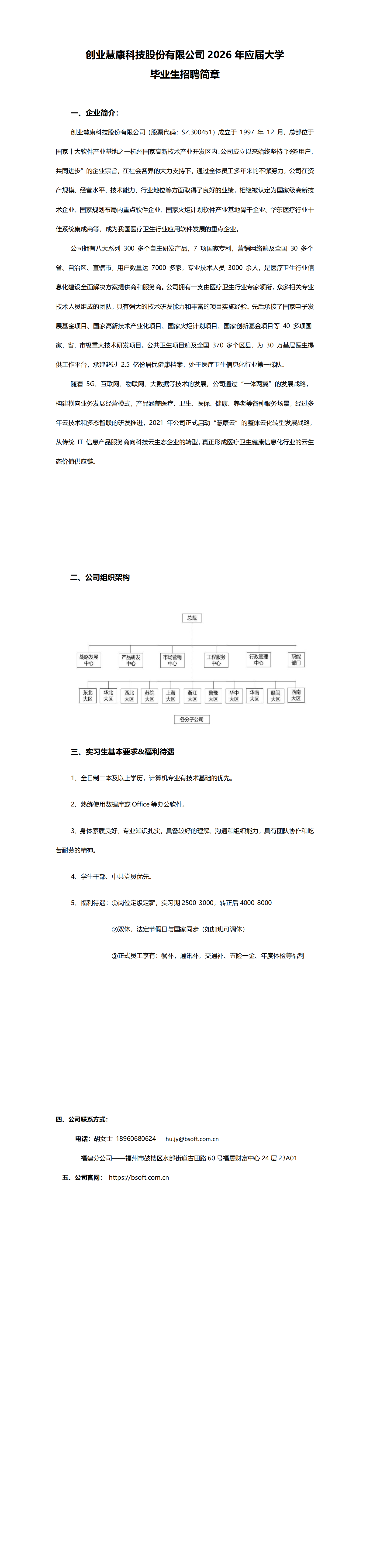 【就业资讯】创业慧康科技股份有限公司2026 年应届大学毕业生招聘简章