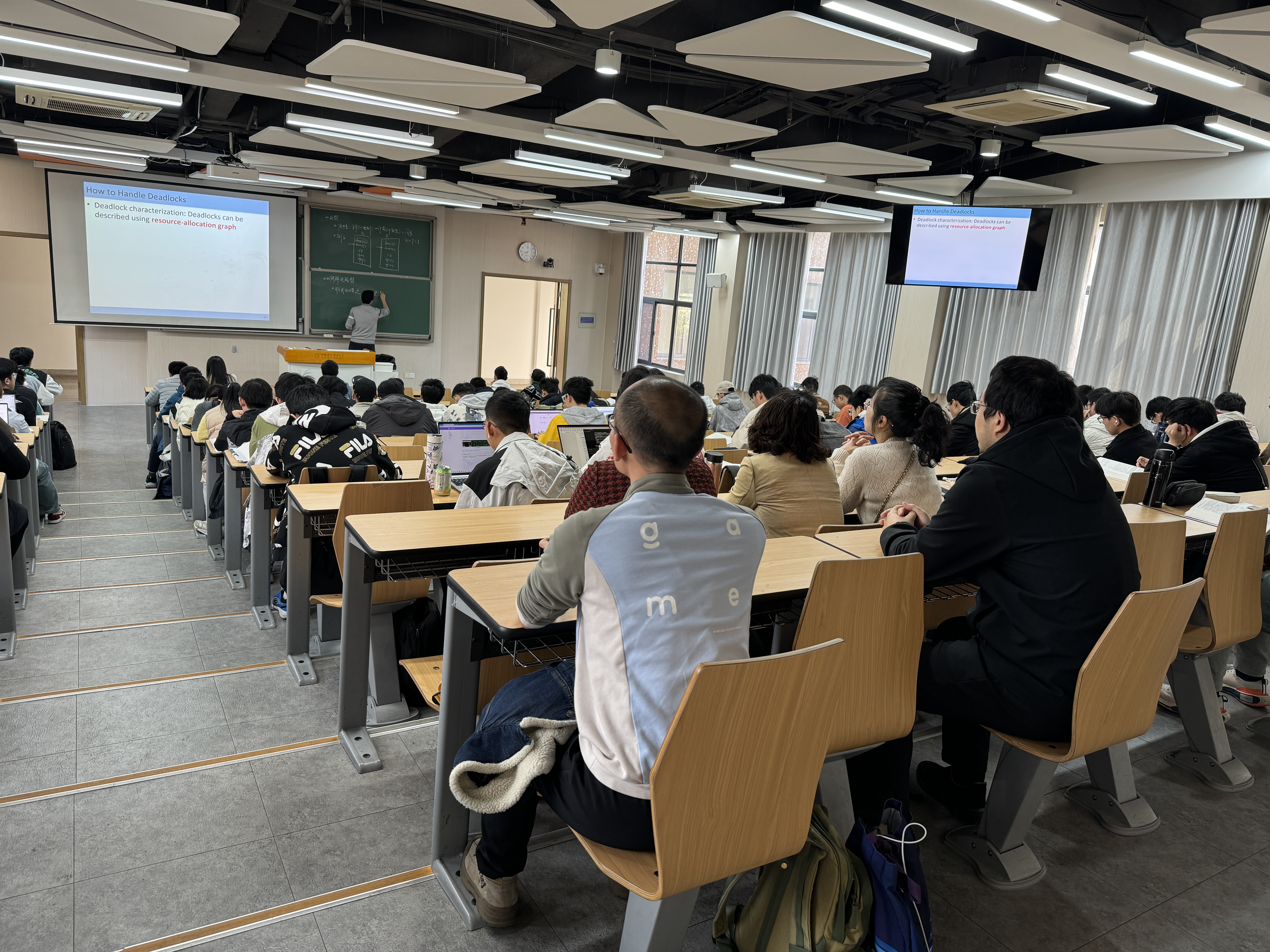 交流调研期间,为促进教学交流、提升教学质量,调研组进行操作系统、面向科学问题求解的编程实践、计算机组成原理等课堂教学观摩活动,参观了信息与计算机国家级实验教学示范中心。