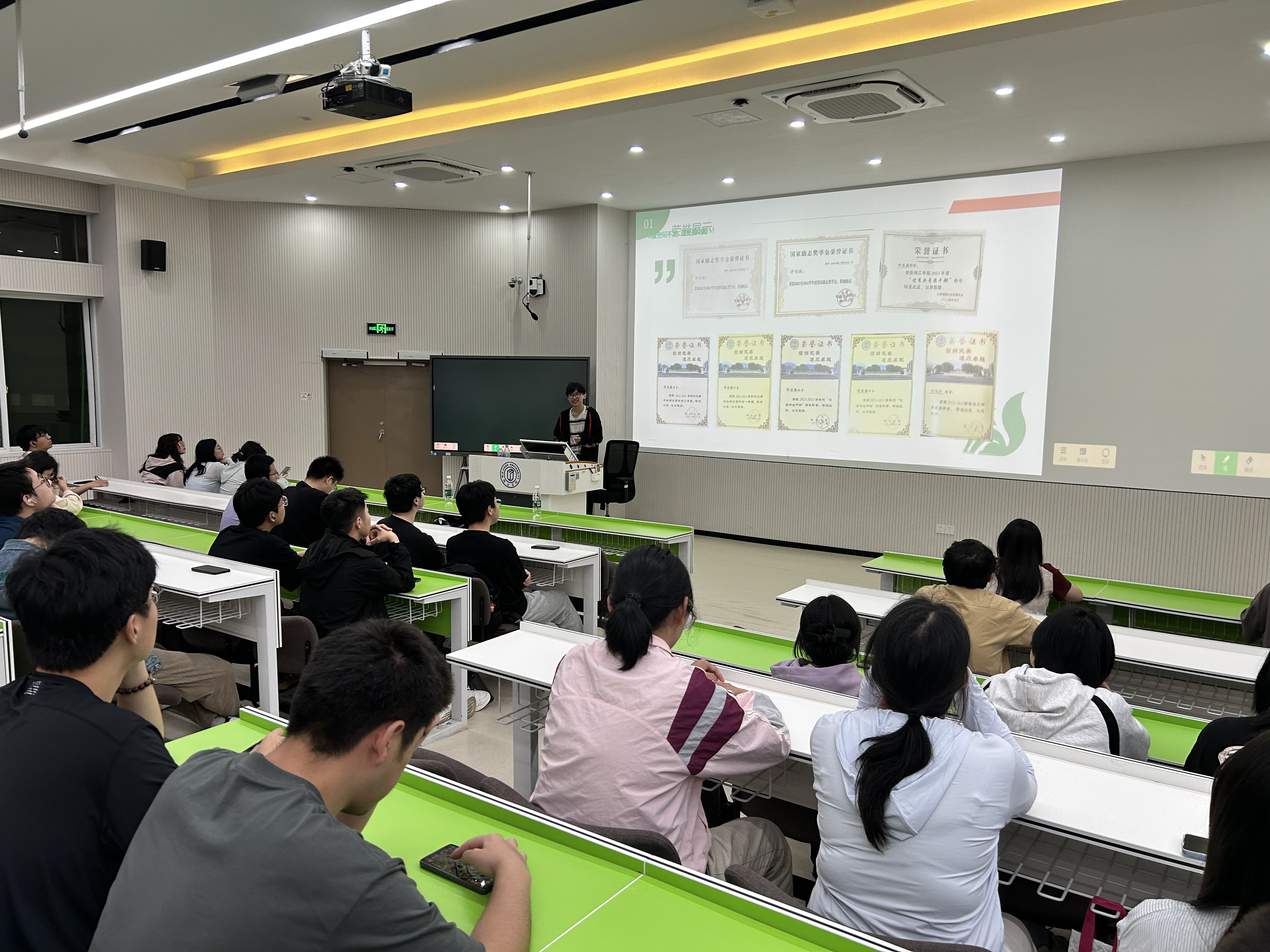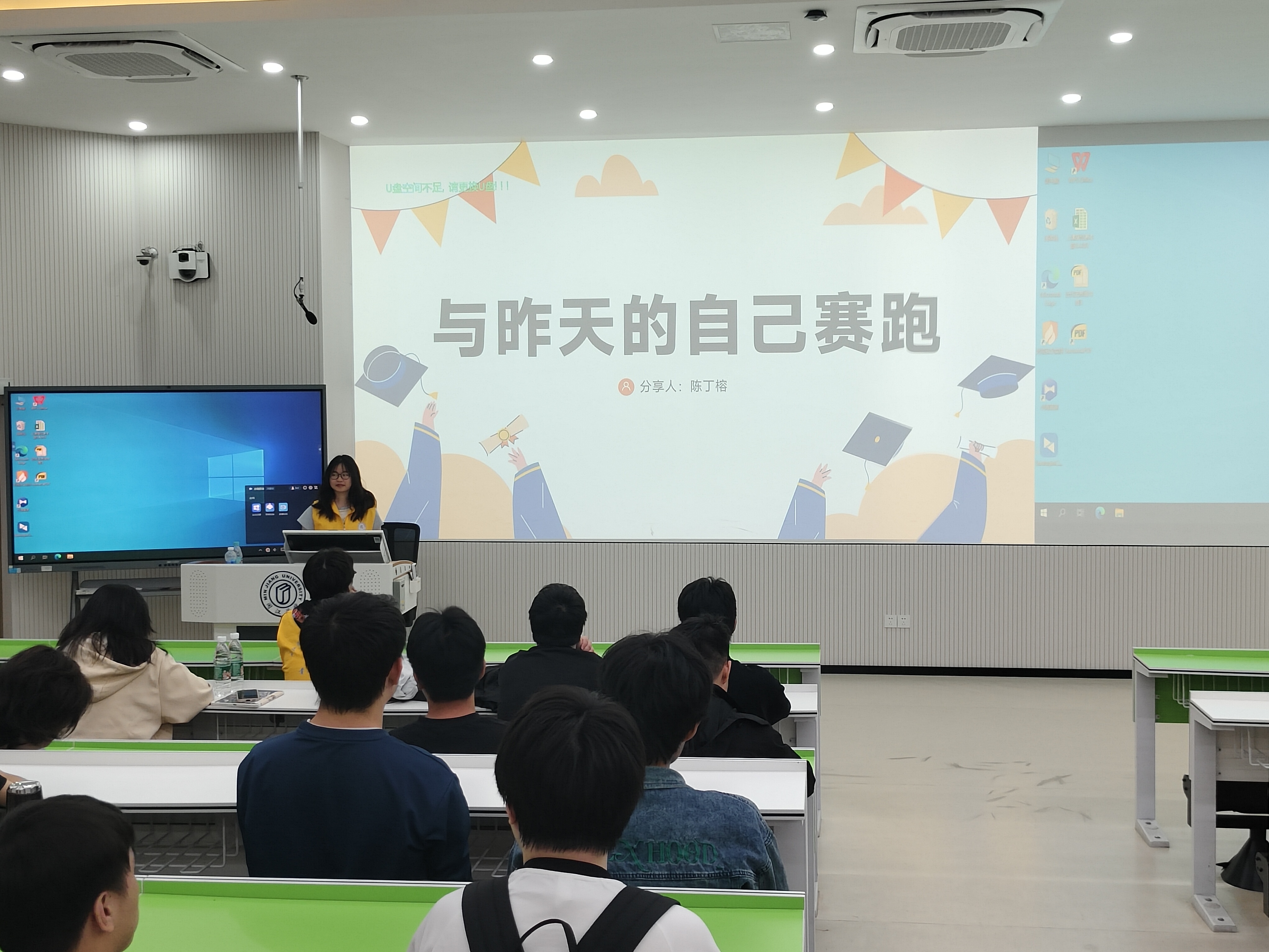 陈丁榕同学,国家奖学金获得者、2022 级通信工程专业员工。她以“超越昨天的自己”为主题,向同学们分享了她从大一的迷茫到大二、大三开始有逐步的目标、有自我追求的个人经历。“学用结合、知行合一”,这是她推荐给在场学弟学妹的学习方式,不再局限于课堂,而是主动参与到学术活动当中。同时,她还讲述到这次分享经历也是她自我激励的过程,能够使她坚定自己的理想信念,更加肯定自己的努力。发现个人的闪光点是极其重要的事,她希望能与同学们共勉,共同营造公司良好的学习氛围。