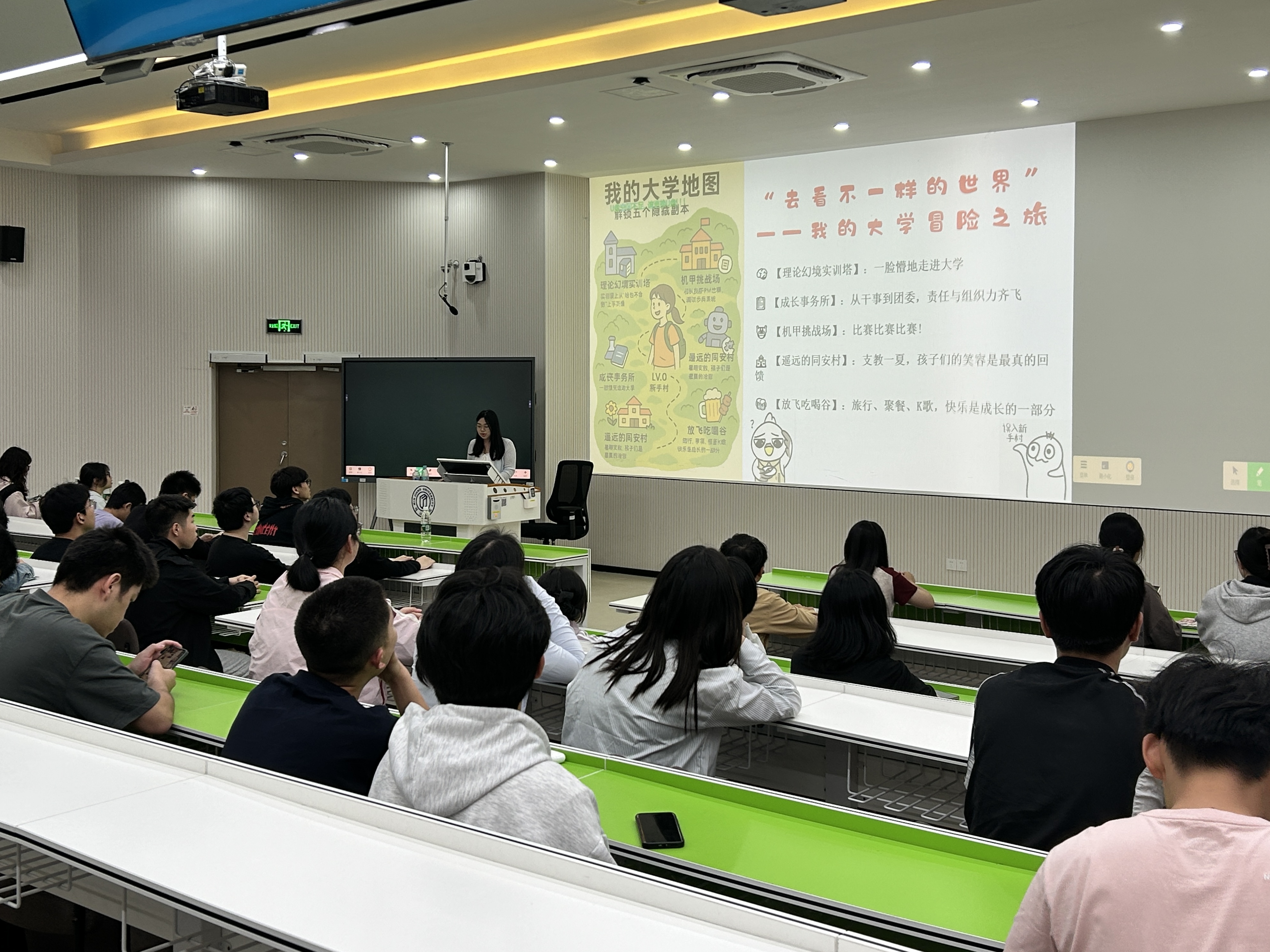 沈媛欣同学,国家奖学金获得者、2021 级计算机科学与技术专业员工。分享会上,她将自己在员工工作、竞赛活动、社区服务等方面的经历与收获全面地展示给在场的观众。同时,她还以自己竞赛经历为例,从最初的机甲技术小白到勇敢加入Robomaster机甲战队打比赛,这一过程,也使她变得更加外向。她寄语在场的学弟学妹,人生要敢于追求自己的梦想,抓住每一个机遇突破自我,积极响应党和国家号召,践行社会主义核心价值观,成为有理想、能担当、肯吃苦、勤奋斗的新时代好青年。