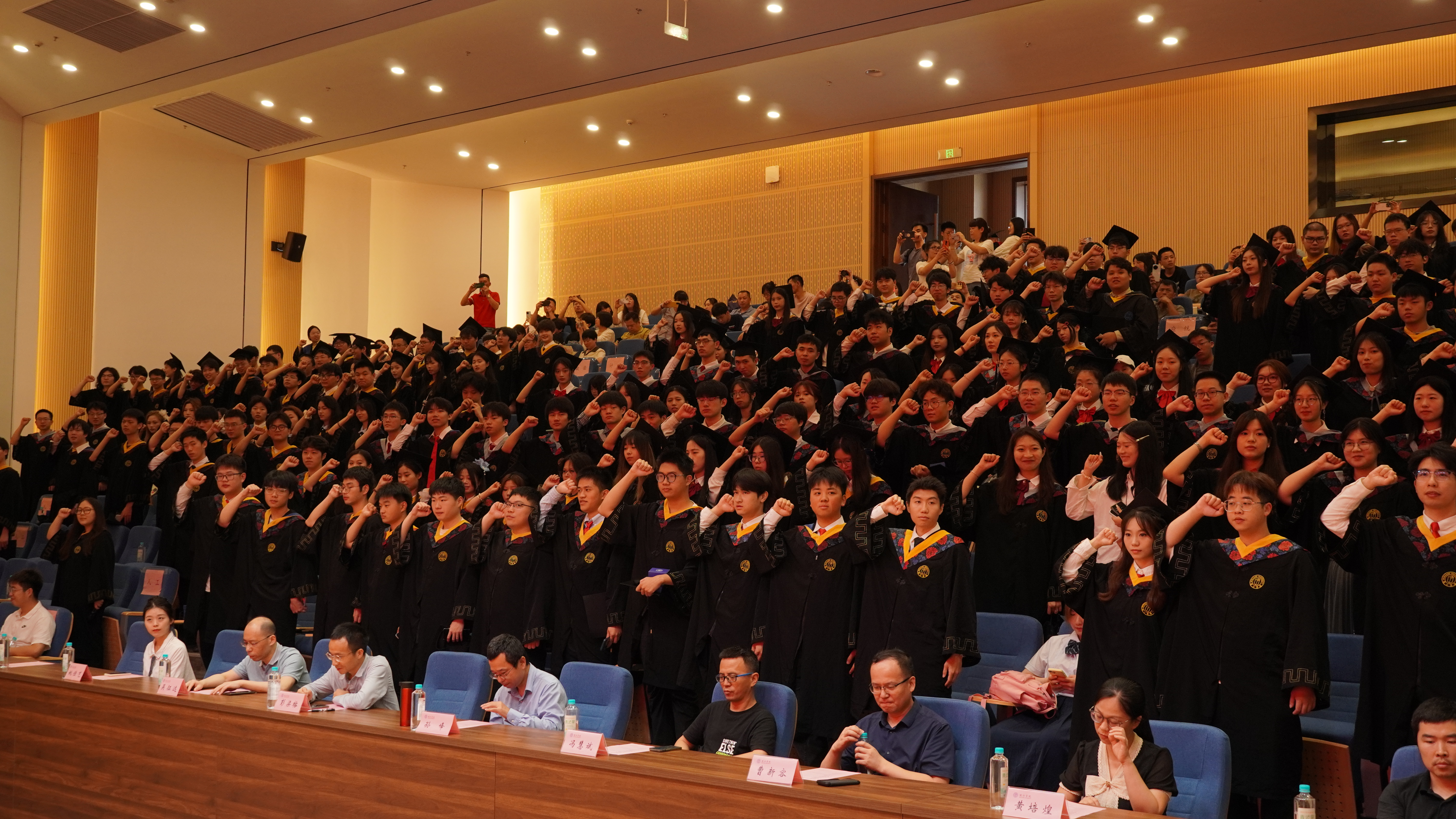 毕业班辅导员与员工代表共同献唱歌曲,温暖的旋律唱出了对青春的不舍与对未来的祝福。 随后,领誓人沈媛欣带领全体毕业生庄严宣誓:“以青春之我,勇担时代使命!以奋斗之我,报效伟大祖国!为实现中华民族伟大复兴贡献闽大力量!”铿锵的誓言回荡在报告厅中,展现了2025届毕业生的责任与担当。