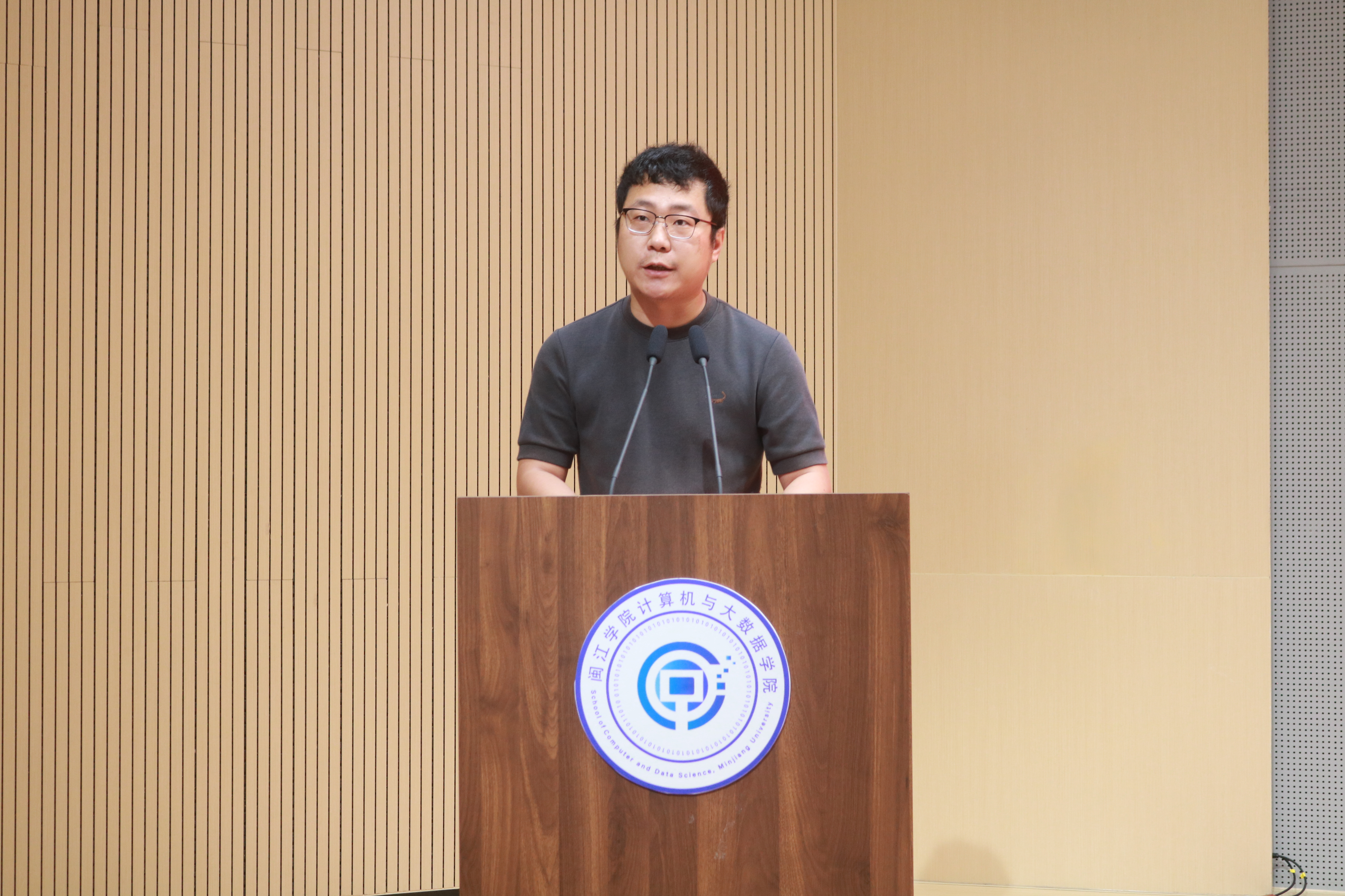 孙知信经理为毕业生送上真挚的毕业致辞。他首先祝贺同学们顺利完成学业,并感谢全体教师的辛勤付出。随后,他对毕业生提出三点希望:一是传承闽院荣光,以科技之力服务社会;二是把握时代机遇,努力成为驾驭数字洪流的领航者;三是书写科技温度,不忘心怀天下,始终铭记“技术向善”的初心。
