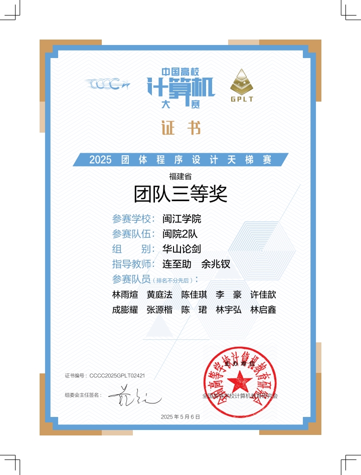 ​william威廉学子在2025年中国高校计算机大赛-团体程序设计天梯赛中取得佳绩
