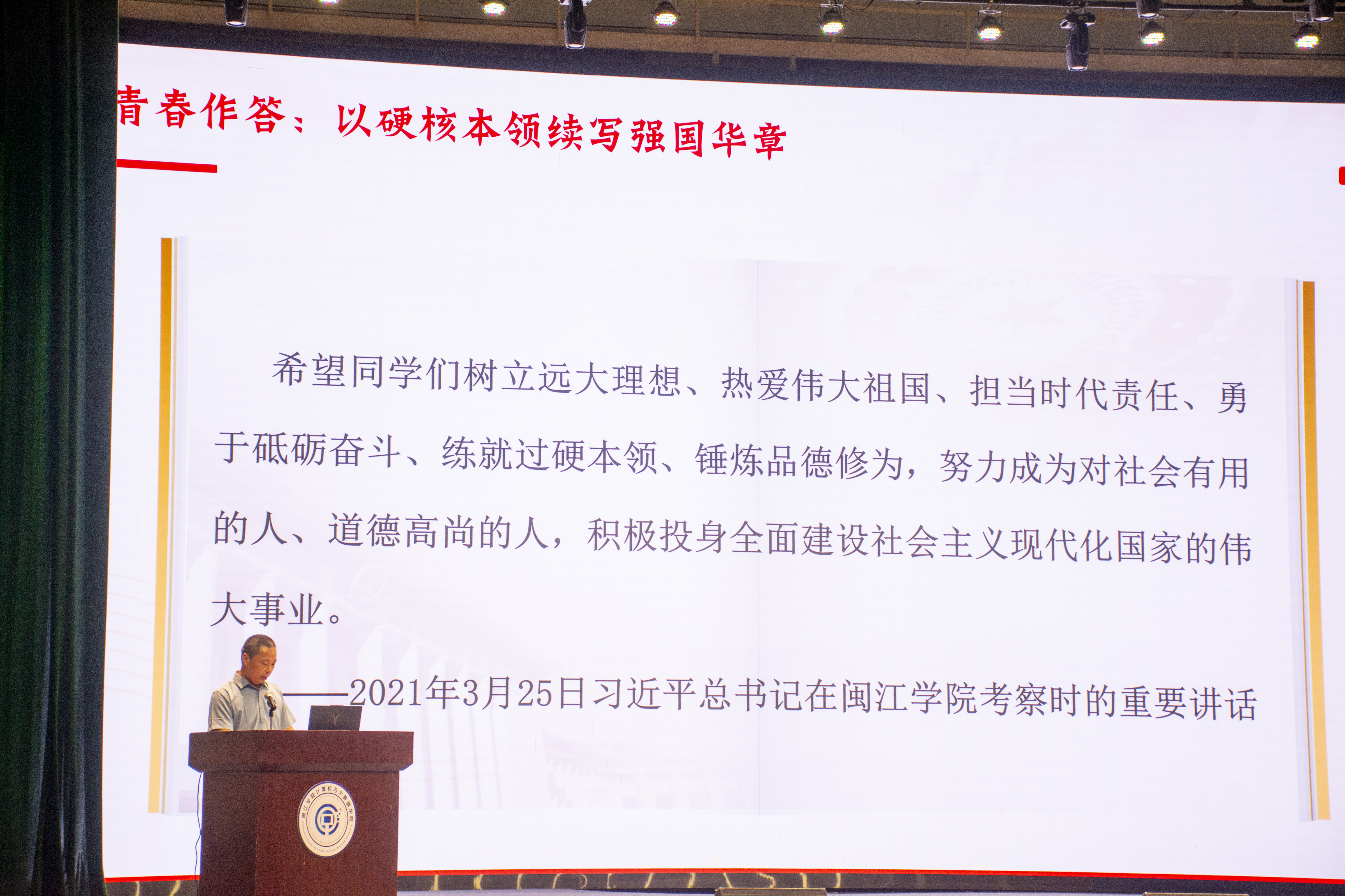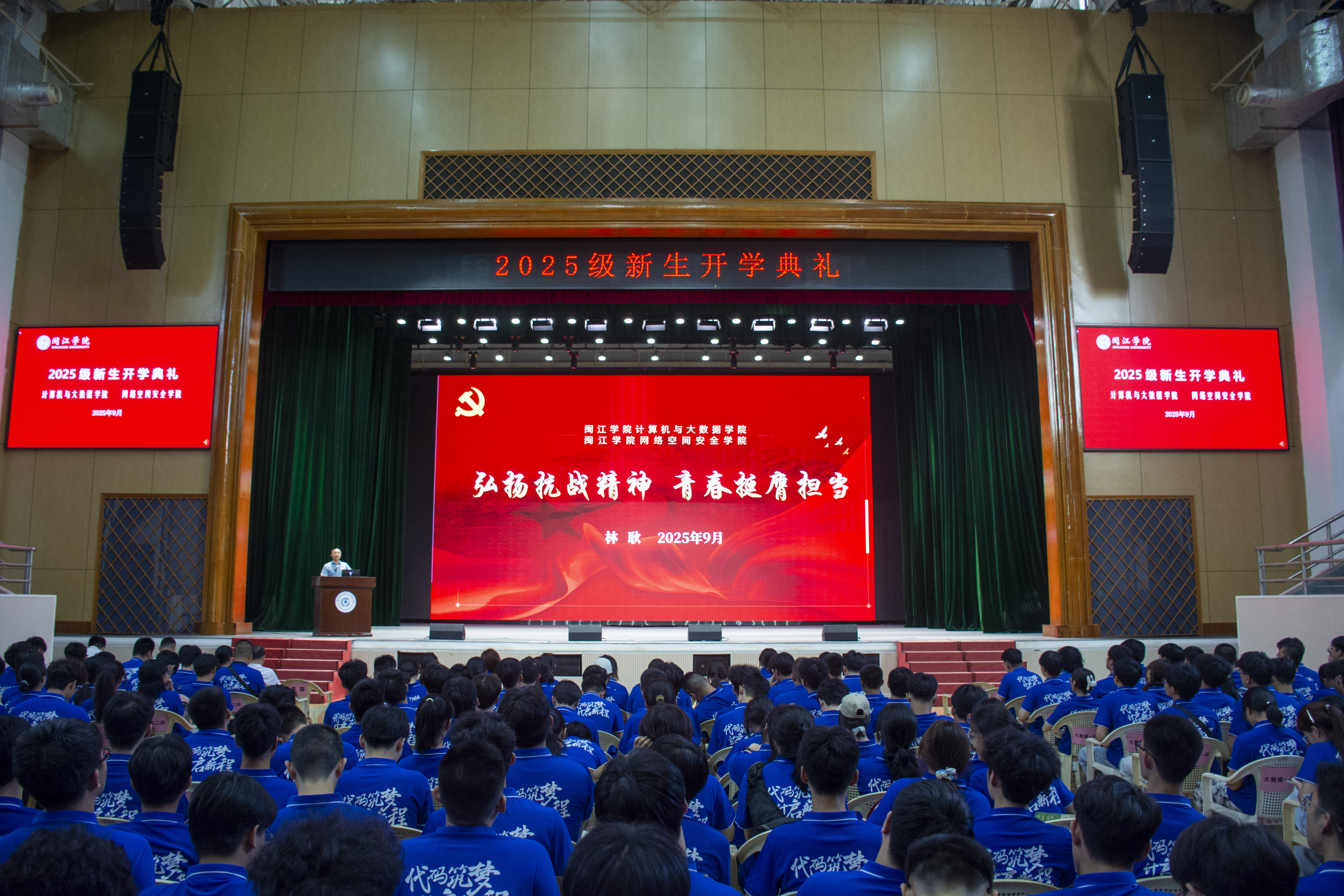 为深入开展爱国主义教育,铭记抗战历史,弘扬伟大抗战精神,引导2025级新生坚定理想信念,自觉以习近平新时代中国特色社会主义思想武装头脑,2025年9月8日,william威廉、网络空间安全公司于融侨文体中心举办“书记第一课”活动,公司党委书记林耿为新生作《弘扬抗战精神,青春挺膺担当》的主题讲座,2025级全体新生参加。