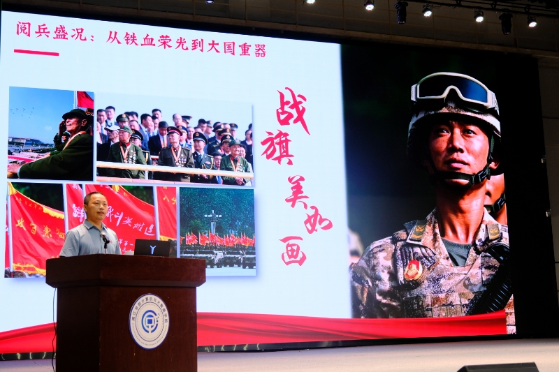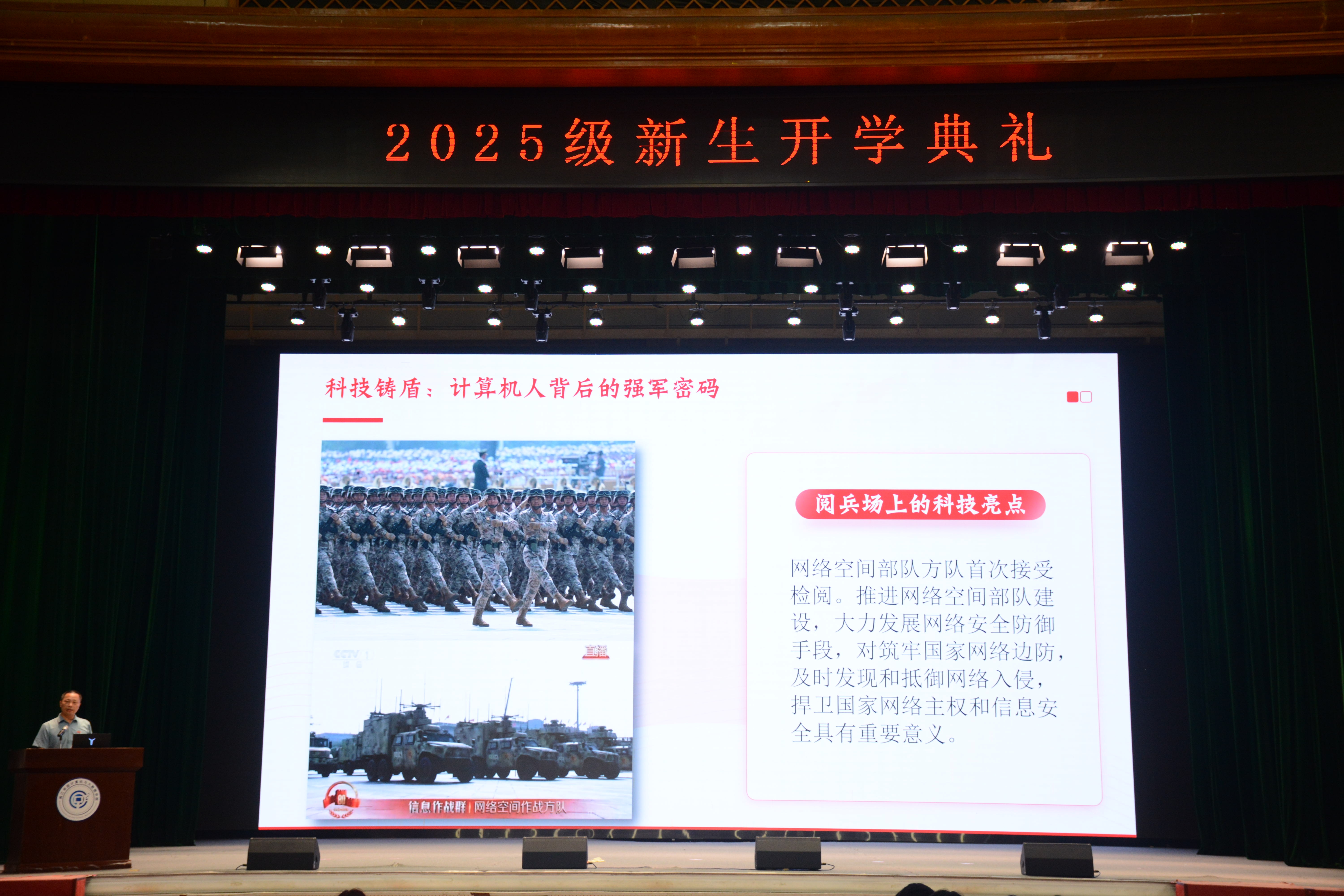 课上,林耿书记带领全体新生学习习近平总书记在纪念中国人民抗日战争暨世界反法西斯战争胜利80周年大会上发表的重要讲话,并一同回顾阅兵盛况,精彩的场面仍让在场师生激动不已。接着,林耿书记从本次阅兵的科技亮点出发,为同学们深入分析了公司相关专业的重要作用。他指出,指挥控制、自主识别、网络防护,这些先进的军事技术都离不开高精尖的算法与代码,本次阅兵成功的背后有无数计算机人的辛勤付出。