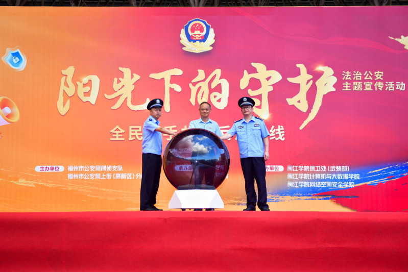 公司党委常委、副董事长李新贤,福州高新区管委会副主任、上街(高新区)分局局长陈长青,福州市公安局刑侦支队副支队长黄超雄出席活动。启动仪式上,警校双方领导共同按下启动键,标志着福州高校2025年秋季开学防范电信网络诈骗宣传月工作正式拉开帷幕。