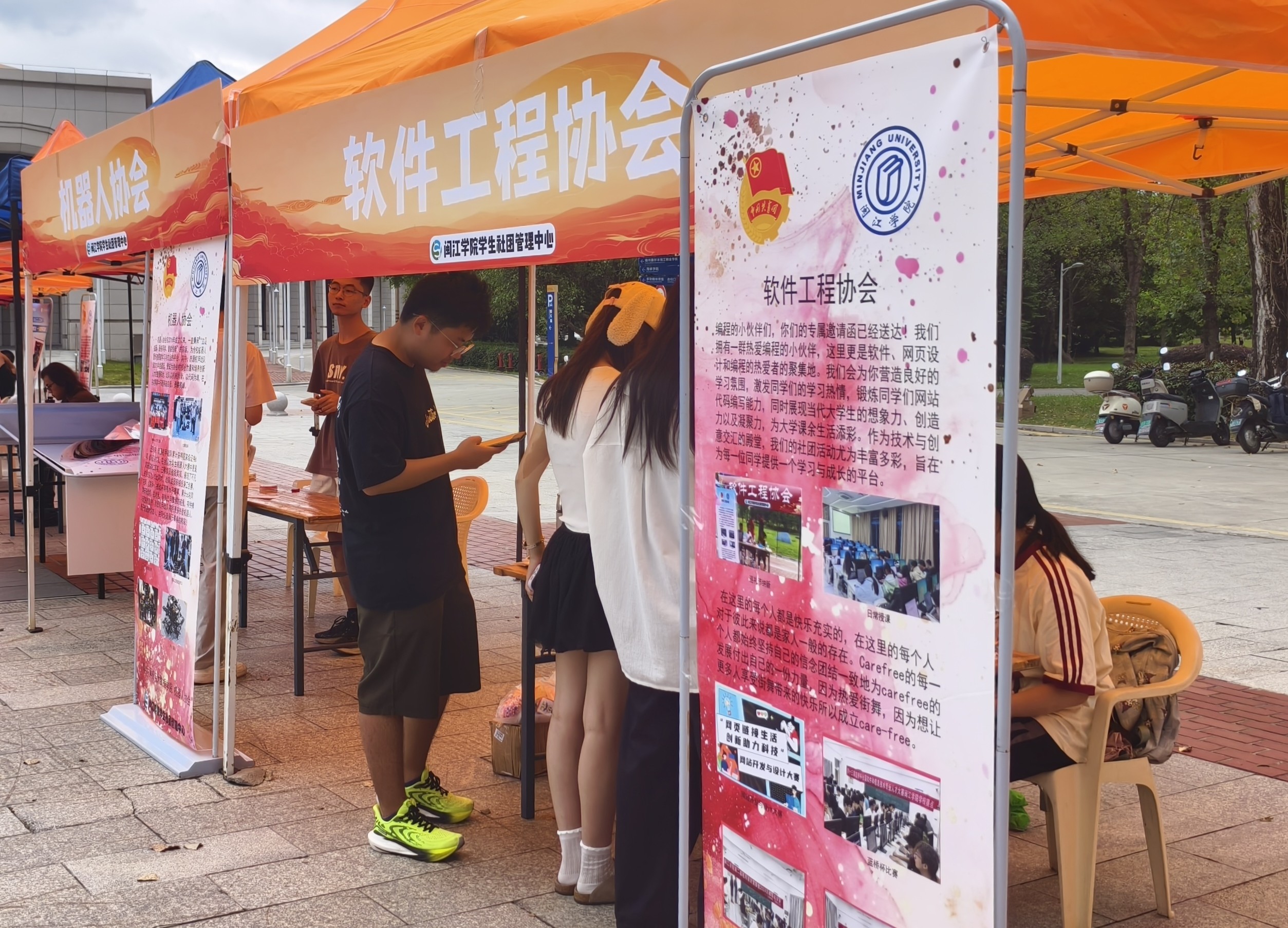 走近活动现场,悠扬的吉他声率先溢满广场。宏吉他协会摊位前,琴声流淌、掌声不断,音乐在青年心中悄然种下热爱的种子;数学建模协会区的魔方挑战热度拉满,高手秒复原引发不断惊叹;软件工程协会用通俗生动的展示“解锁”代码世界,现场互动轻松有趣;数据分析协会以“华容道”小游戏引导同学动脑破局,在挑战中体会数据思维之妙;机器人协会智能作品酷炫亮相,吸睛十足,“未来工程师”梦想在此萌芽;网络空间安全协会通过科普与有奖问答传递网络安全意识,鼓励同学将专业知识运用于实践;理论研究协会用趣味小游戏带大家“玩转哲思”,让深奥理论变得鲜活可感;Carefree街舞协会以镜头定格活力、用舞台燃动青春;图形与动画协会展示从创意到动态呈现的精彩过程,让视觉创作的魅力一览无遗。