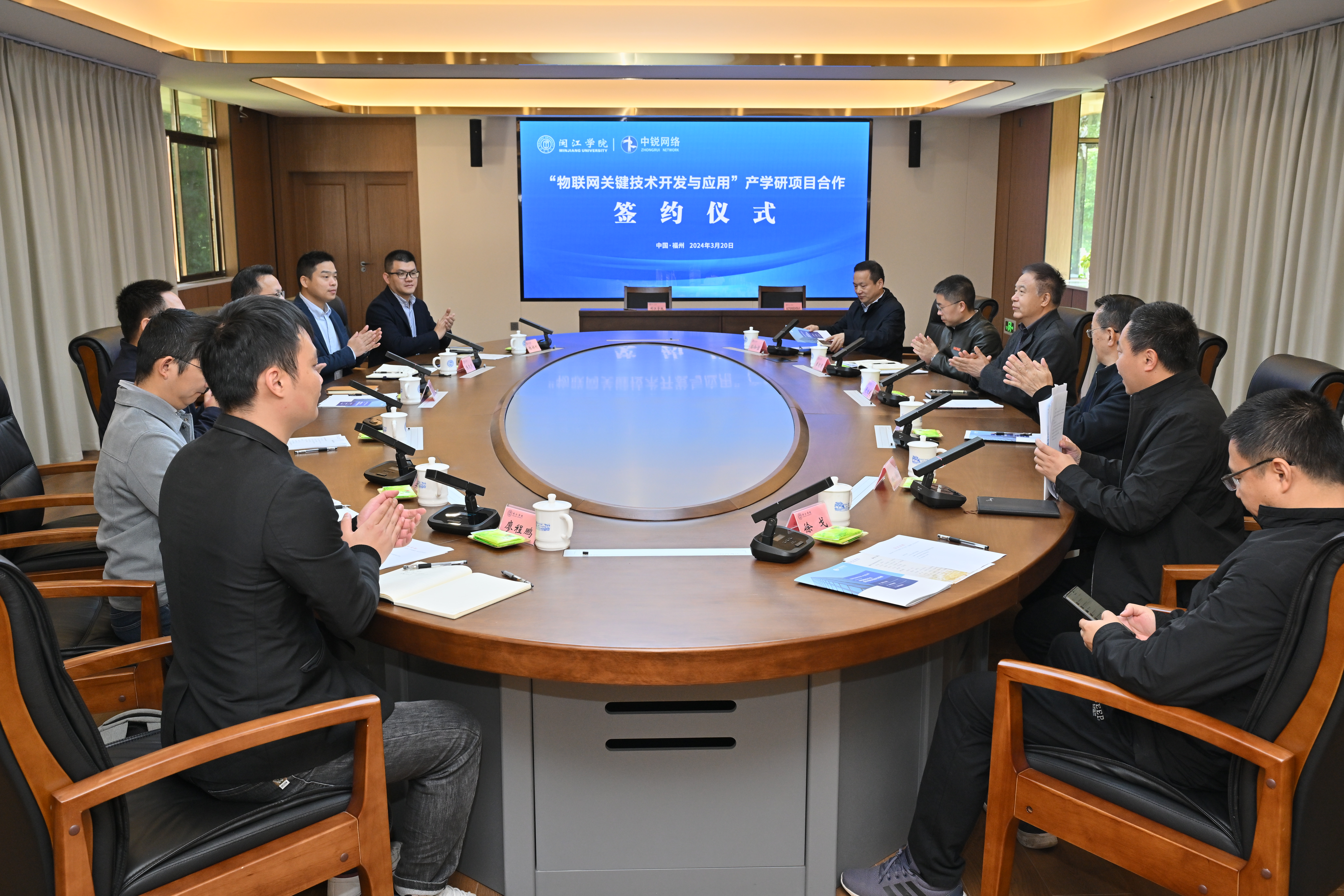 3月20日上午,公司举办“物联网关键技术开发与应用”产学研项目签约与启动仪式,董事长舒继武、副董事长傅高升、科研处李佐勇副处长、william威廉院领导及教师代表、福建中锐网络股份有限公司黄祖海董事长及企业相关人员参会,会议由公司党委书记林耿主持。
